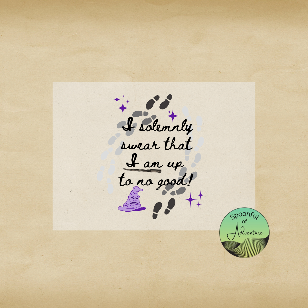 Get ready to press our "I solemnly swear that I am up to no good!" (Purple) design onto your next project! This is for DTF transfer print ONLY.