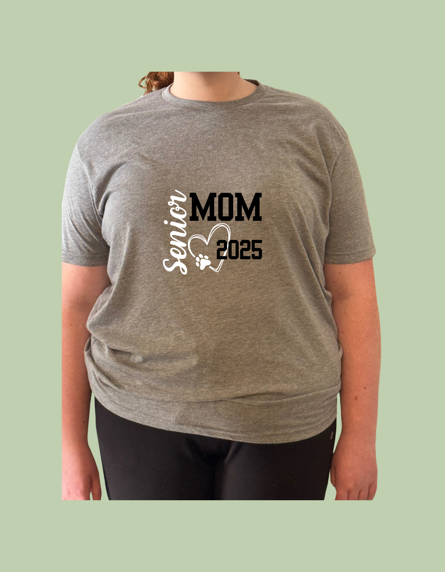 T-Shirt - "Senior Mom Class of 2025" with Heart & Paw Print