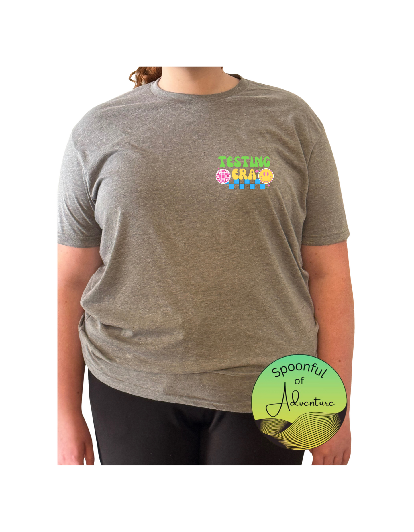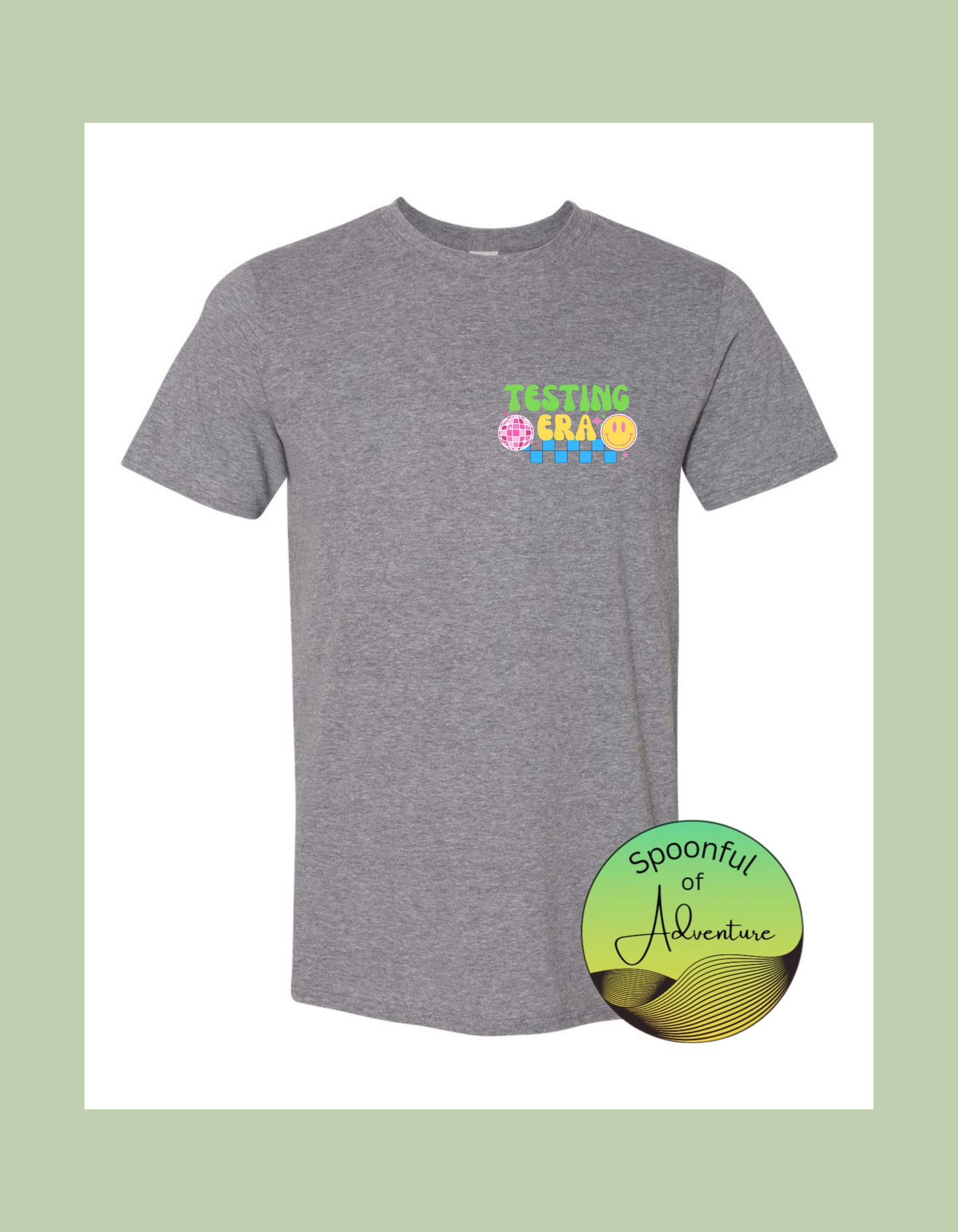 "Testing Era" design on grey Gilden Softstyle 100% cotton t-shirt.